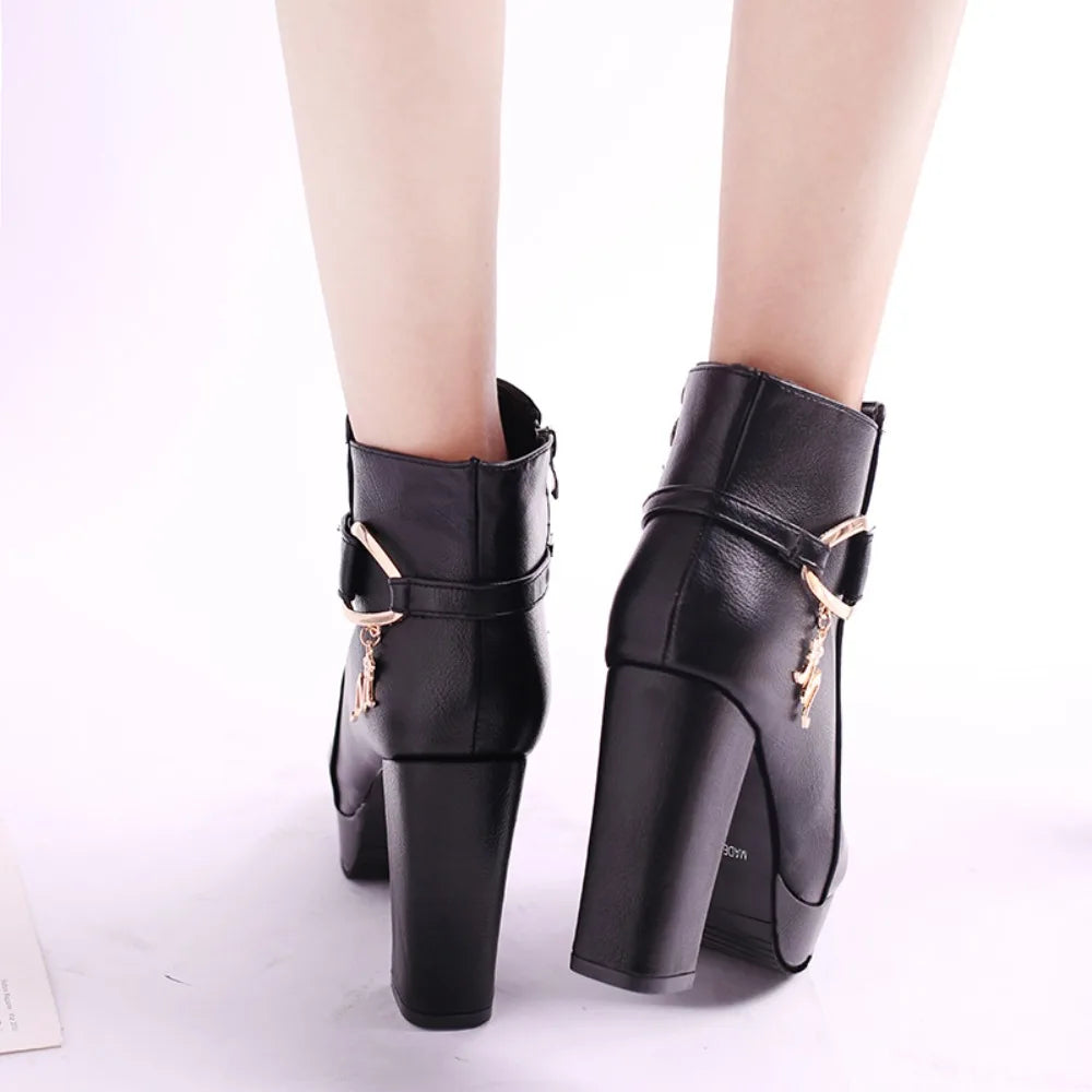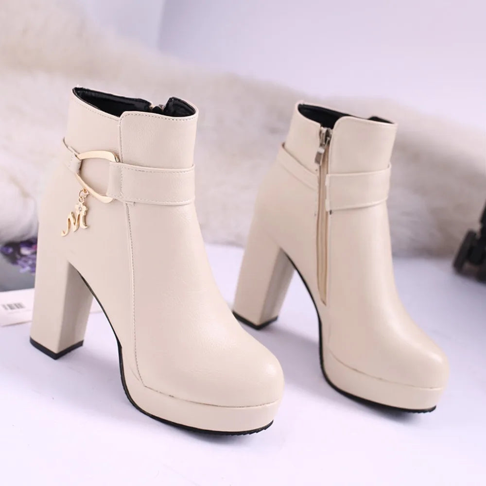 Fashion Ankle Boots Solid Color Round Head Side Zipper Design Autumn Winter Women's Fashion High Heeled Ankle Boot Size 32-43